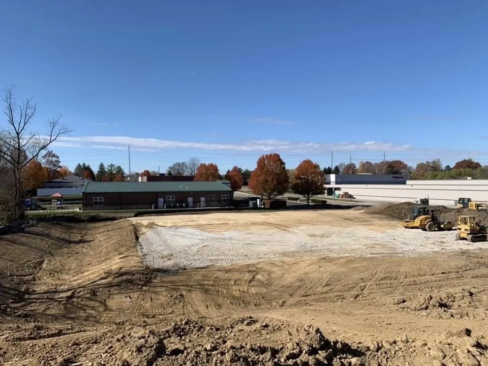 Site grading was carried out to create proper drainage swales and level areas for the parking lot and building pad. We filled the building pad to the required elevation, followed by the distribution of topsoil for future landscaping and construction. - Sanitary Sewer Lateral Installation: